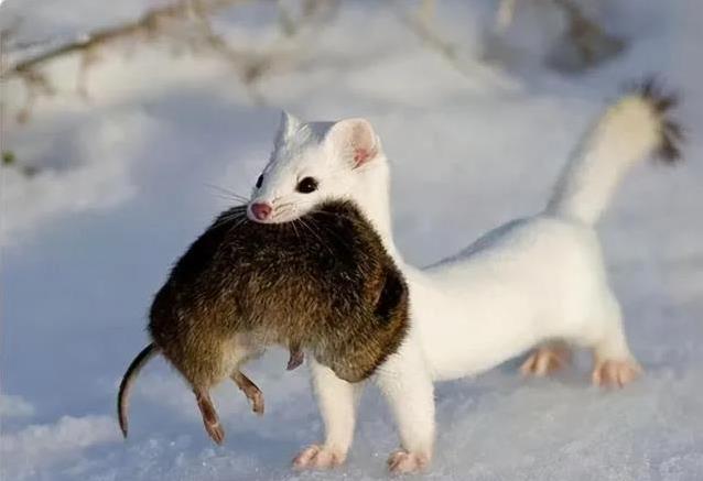 冬天来了,伶鼬的毛色会变白,像披了一件雪白的披风。这不是为了好看,而是为了生存。大雪覆盖的山林里,白毛让它隐身,敌人根本发现不了。如果它住的地方不下雪,毛色就不会变,还是黄的。这小家伙真会看环境行事,脑子灵活得很。